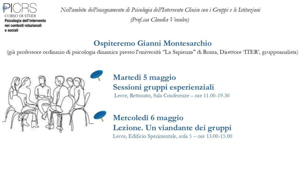 Nell’ambito dell’insegnamento di Psicologia dell’intervento clinico con i gruppi e le istituzioni, un’occasione di incontro e approfondimento con Gianni Montesarchio. […]
